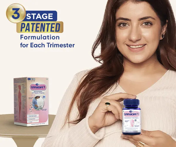 Trimacare™ 1 Advance is a scientifically formulated, patented, trimester-specific pregnancy multivitamin supplement in India tailored to meet the unique nutritional needs of Indian women during preconception, pregnancy, and lactation. Packed with a high dose of L-methyl folate & over 20 multi-micronutrients, the antenatal vitamin is formulated for use during the first trimester of pregnancy. By precisely addressing micronutrient deficiencies, Trimacare™ 1 Advance prenatal tablet enhances maternal and fetal health outcomes.